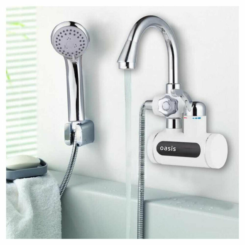 Проточный электрический водонагреватель Oasis EP-3, душ+кран, белый/серебристый