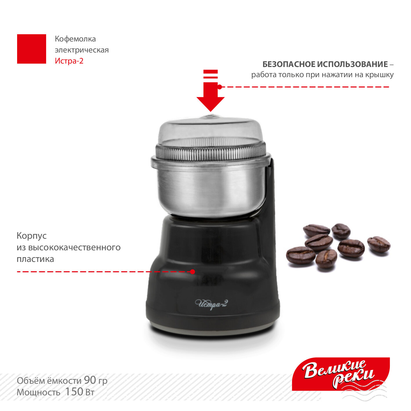 Кофемолка Великие реки Истра-2, черный (150Вт, 90г)