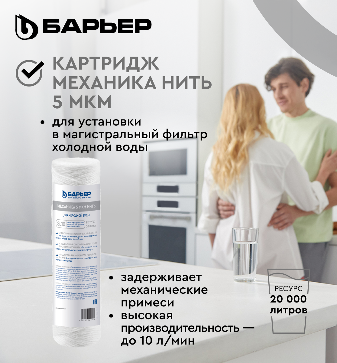 СохранитьБАРЬЕР Механика 5 мкм нить, картридж для фильтров под мойку профи и профи Ин-Лайн, задерживает механические примеси, SL10 интересное: