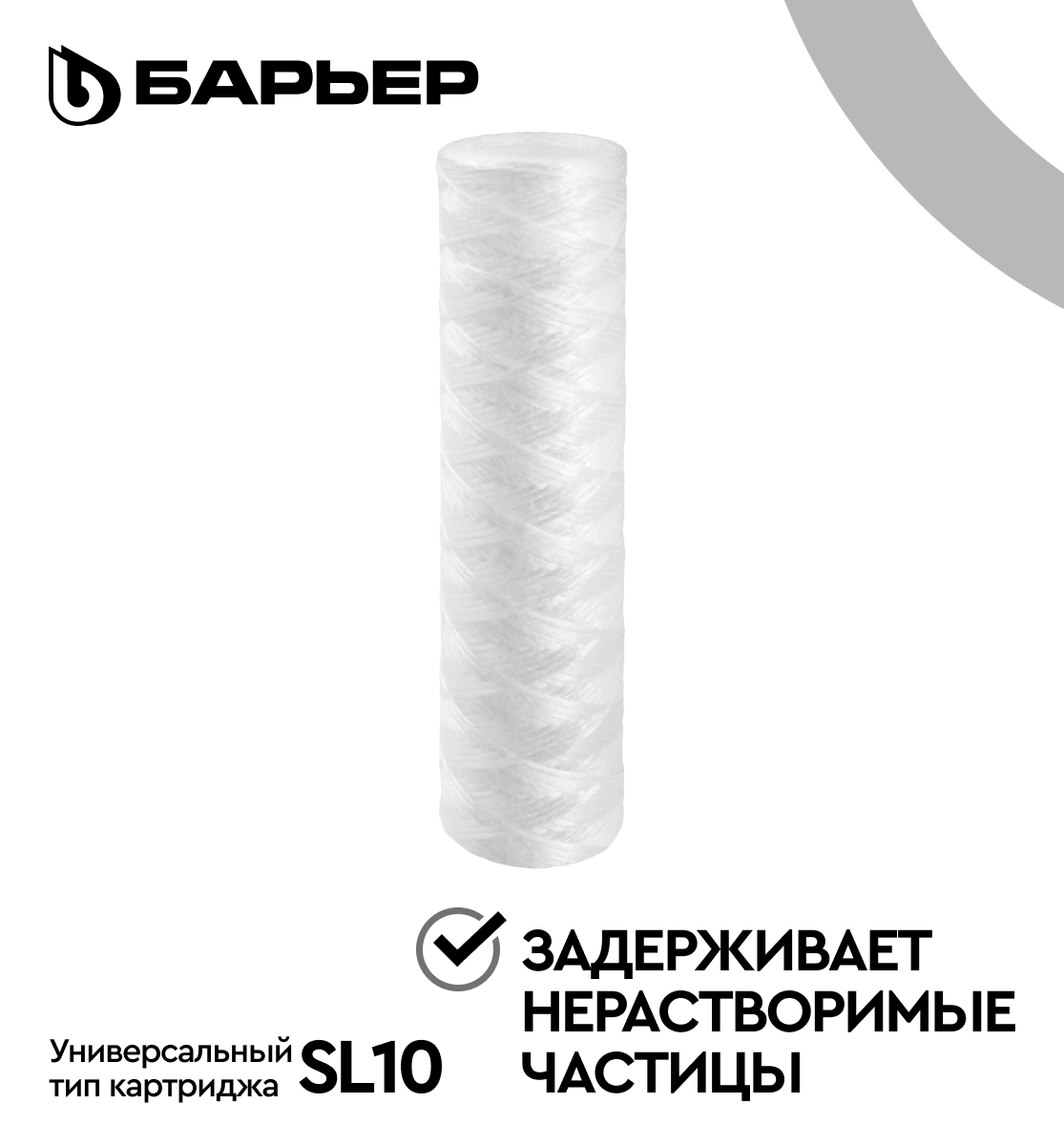 Сменный картридж для магистрального фильтра БАРЬЕР Механика 5 мкм нить Slim Line 10 (SL10)