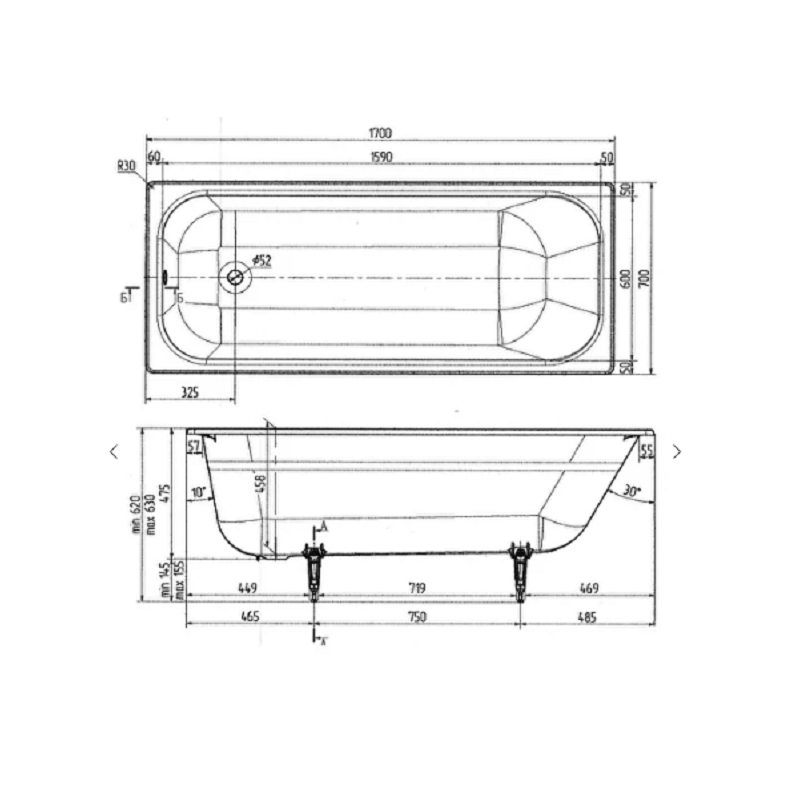 Чугунная ванна Wotte Start 1700х700 БП-э00д1139