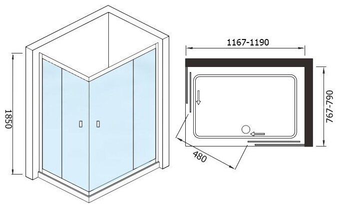 Душевое ограждение WeltWasser 185х120х80 WW200 200QS22-12080 10000001230 без поддона