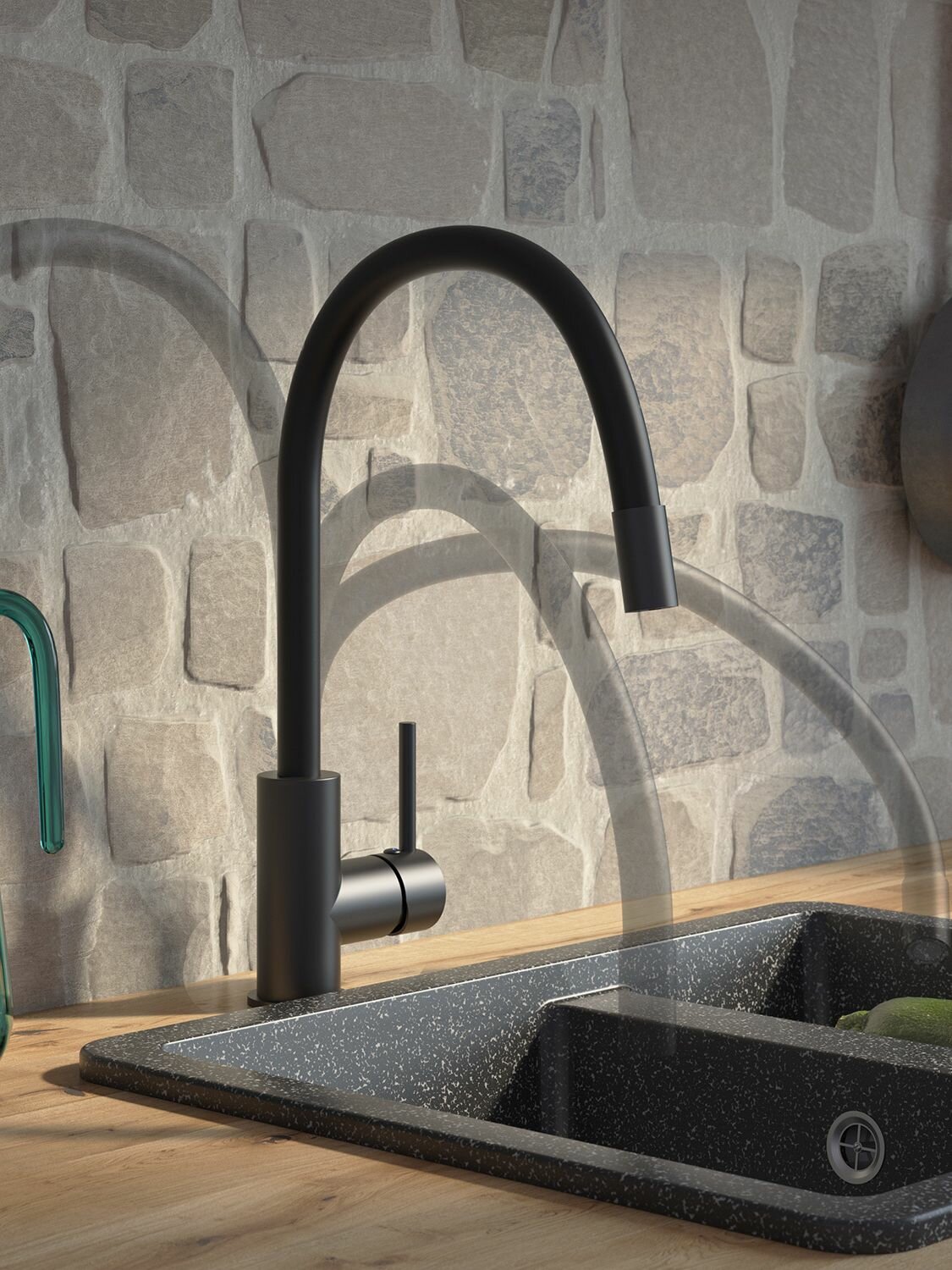 Смеситель для кухни IDDIS Kitchen 360 гибкий излив, черный матовый (K36BLJ0i05)