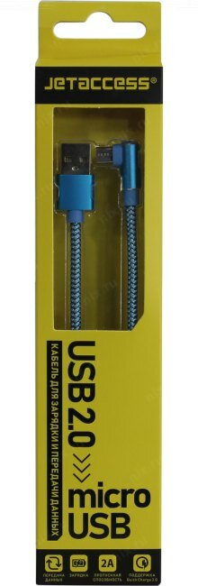 Купить Кабель USB 2.0 - microUSB Jet.A JA-DC25 угловой 2A QC3.0 1м в оплетке синий