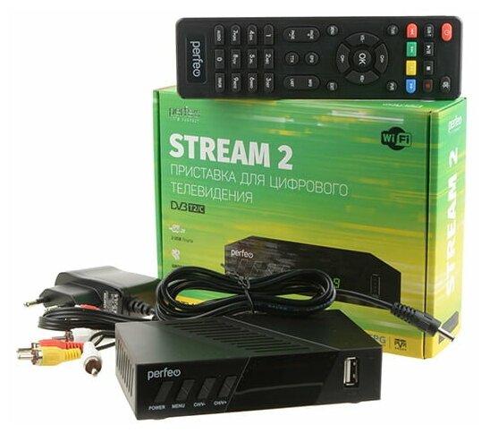 Ресивер DVB-T2 Perfeo STREAM-2 PF_A4488 Wi-Fi IPTV HDMI 2 USB DolbyDigital пульт ДУ .