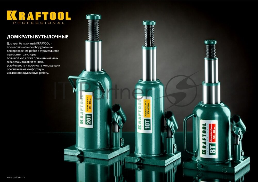KRAFTOOL KRAFT-LIFT 6т, 216-413 мм домкрат бутылочный гидравлический, KRAFT BODY