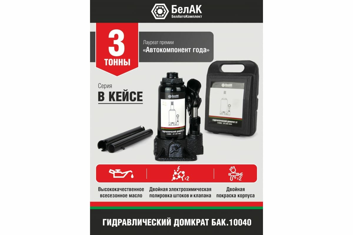 Купить Домкрат Гидравлический 3т В Кейсе Белавтокомплект БелАК арт. БАК.10040
