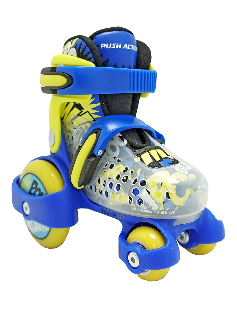Купить Коньки роликовые квады р.26-29 ROL109 Blue/gren RUSH ACTION