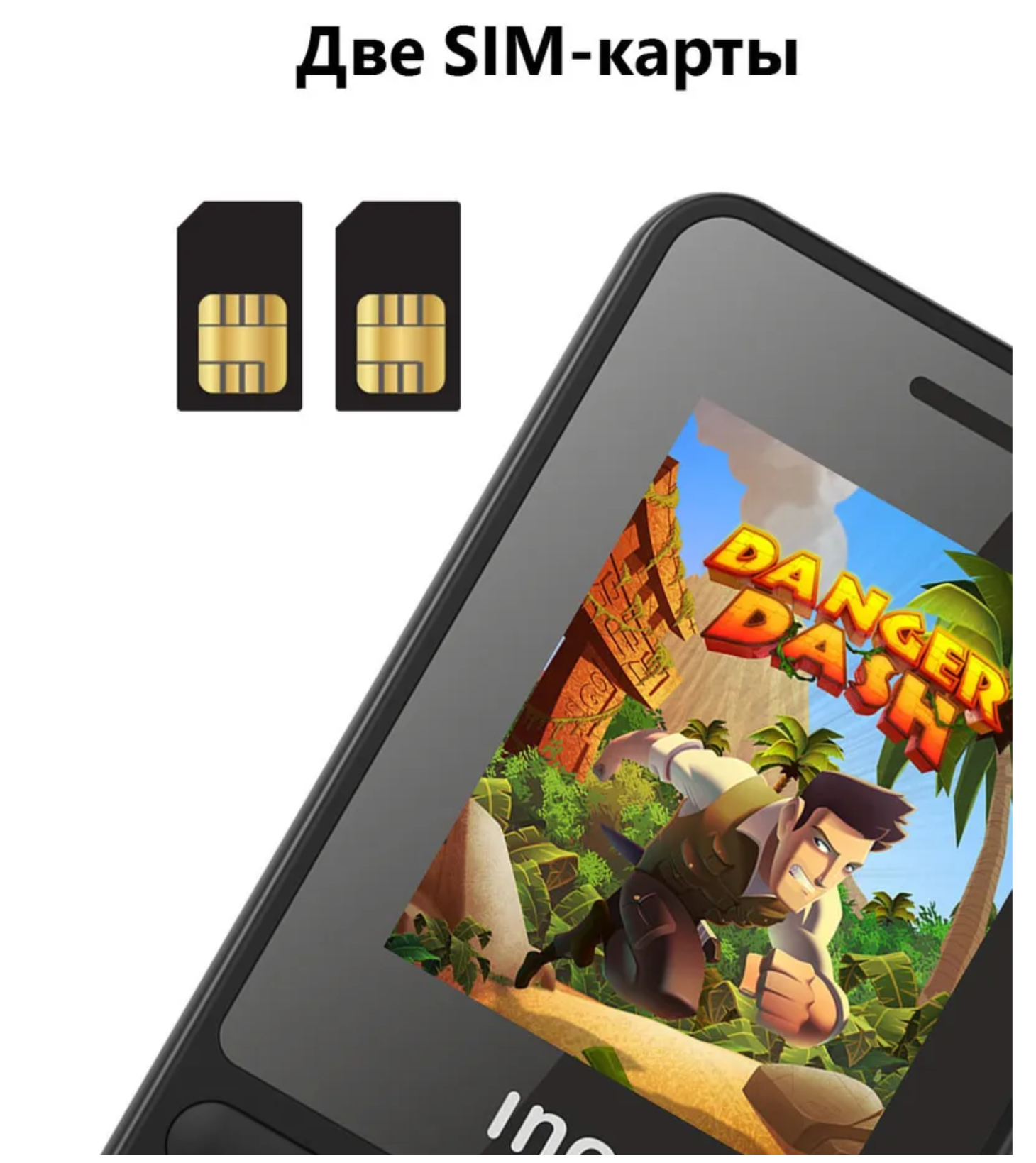 Сотовый телефон INOI 109 черный(2G,2*SIM,1,8",TN,160х128,mSD до 32 ГБ,0.08Мп,1750 мАч,BT,FM,фонарик)