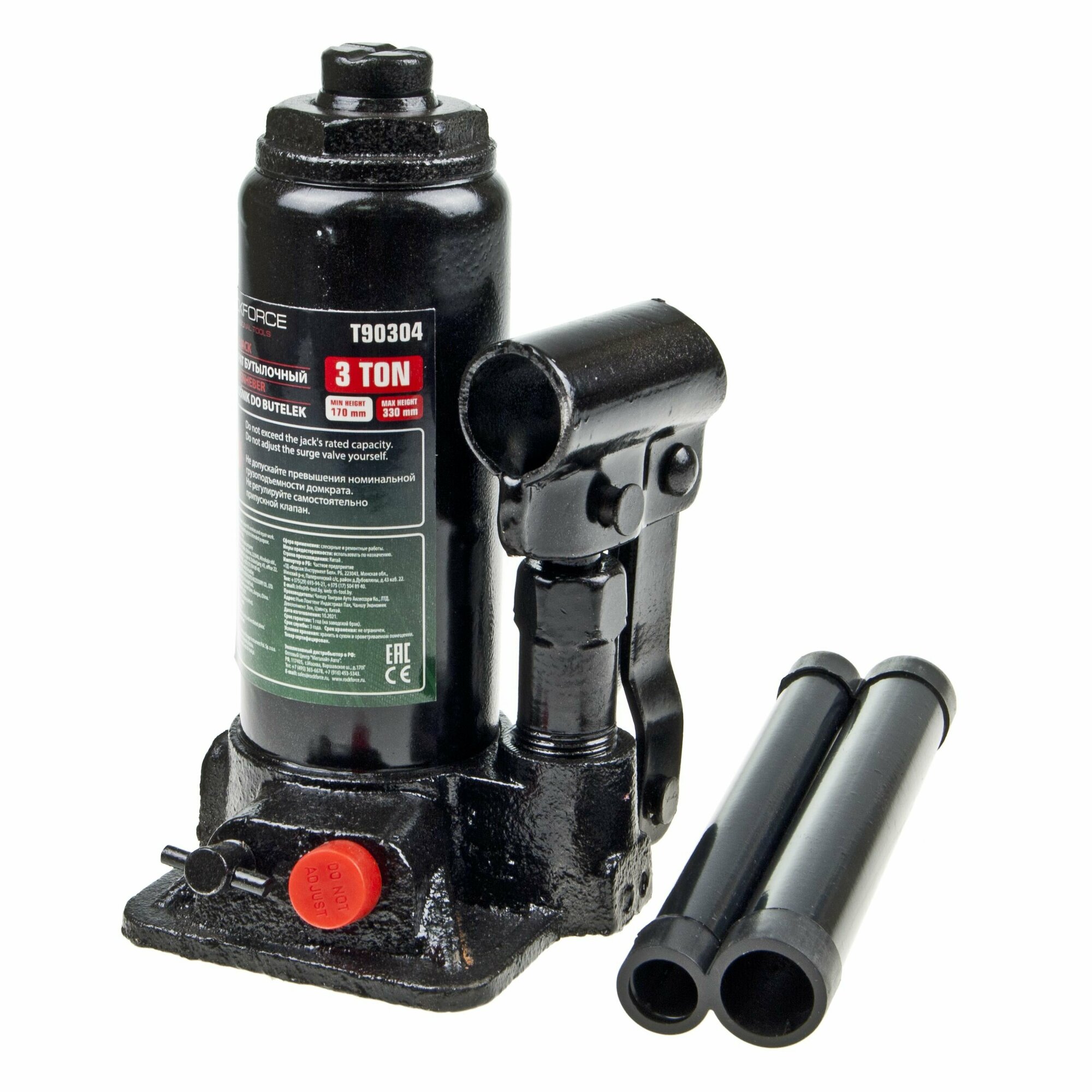 Домкрат гидравлический RF-T90304(DS) бутылочный с клапаном 3т (выс.подъема 170-330мм) ROCKFORCE 110, ROCK FORCE RFT90304DS (1 шт.)