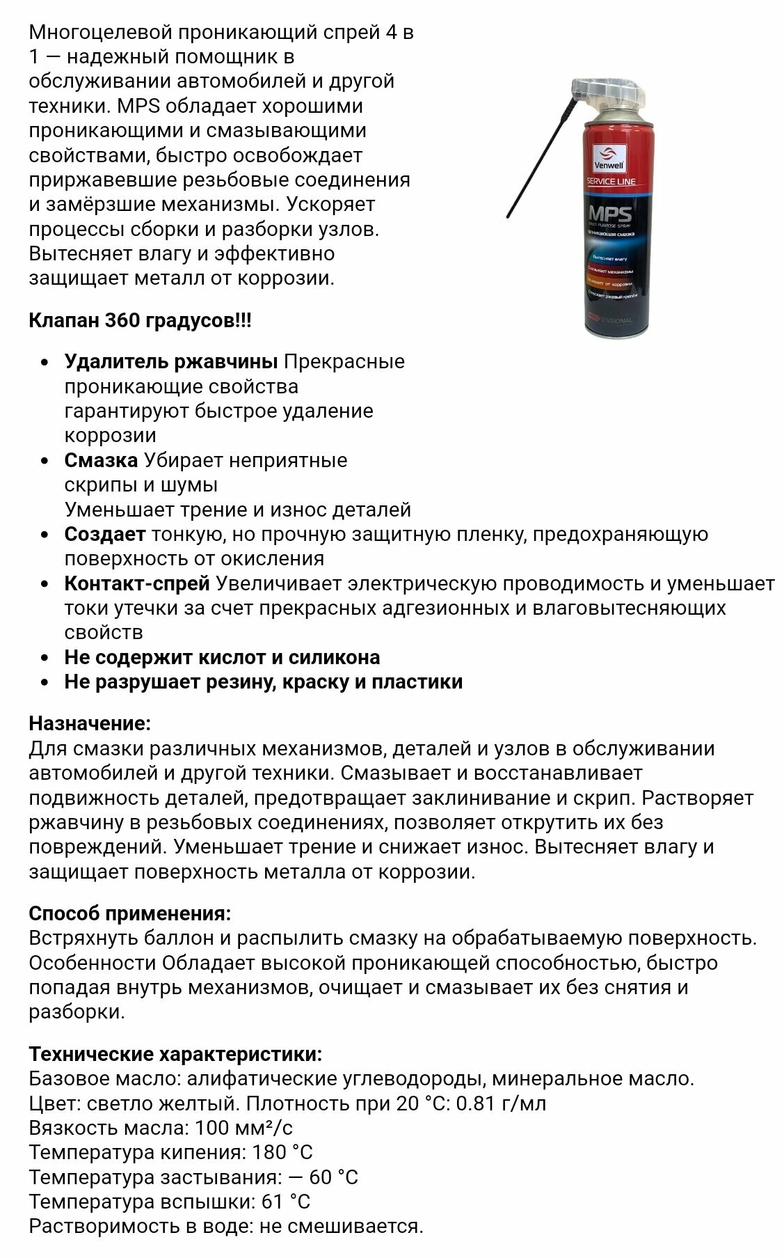 Проникающая Смазка Mps Multi Purpose Spray 650 Мл Venwell арт. VWSL021RU