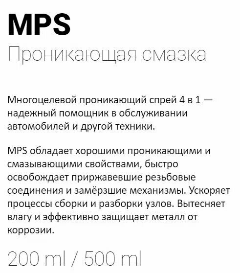 Проникающая смазка MPS 500 мл, VW-SL- 021RU