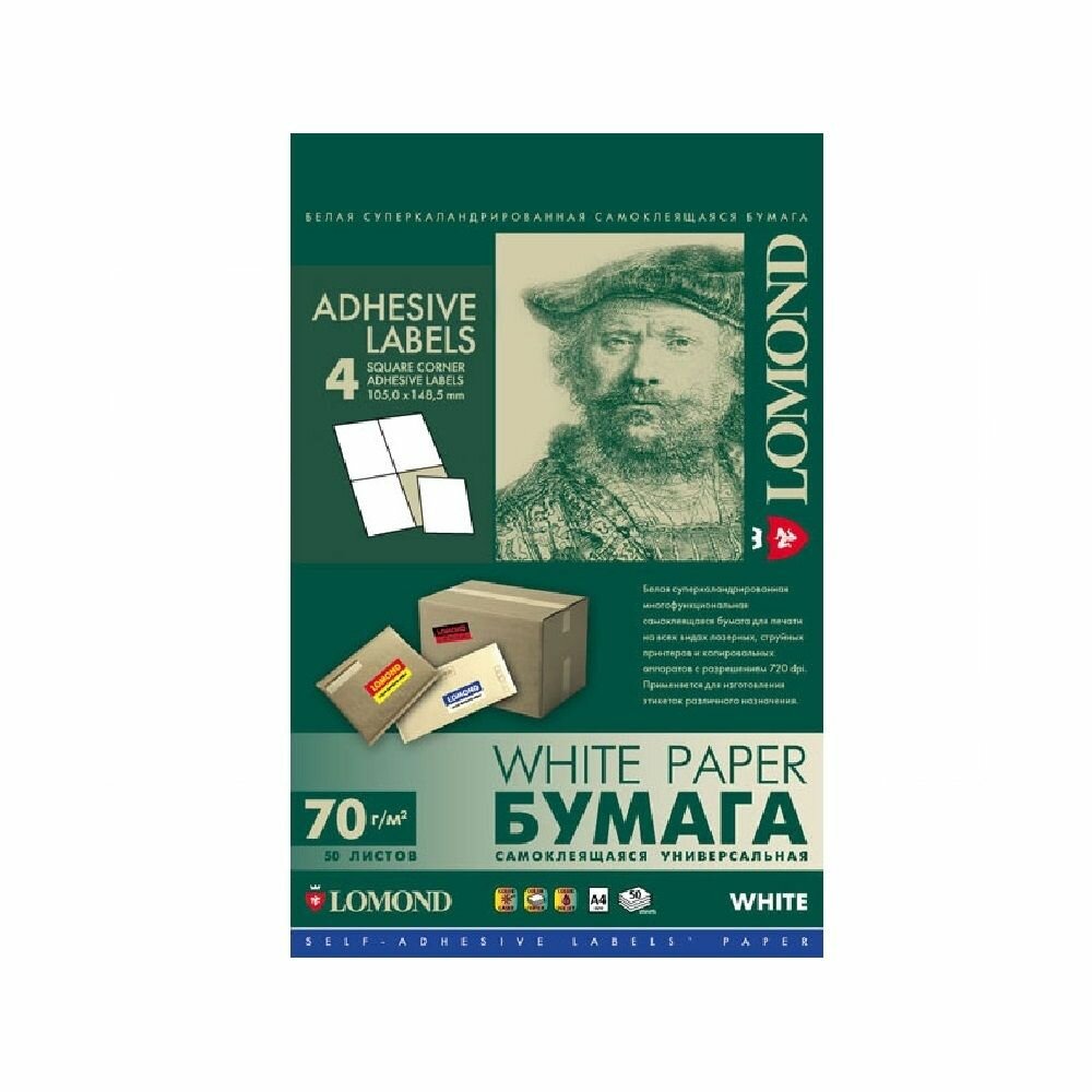 Бумага самоклеящаяся, А4, 50 листов, 4 этикетки (105мм х 148,5мм), 70 г/м2, Lomond