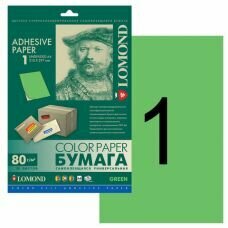 Бумага LOMOND 2120005 самоклеющаяся зелёная неделённая, 1 часть А4 (210 x 297 мм) 80 г/м2, 50 листов