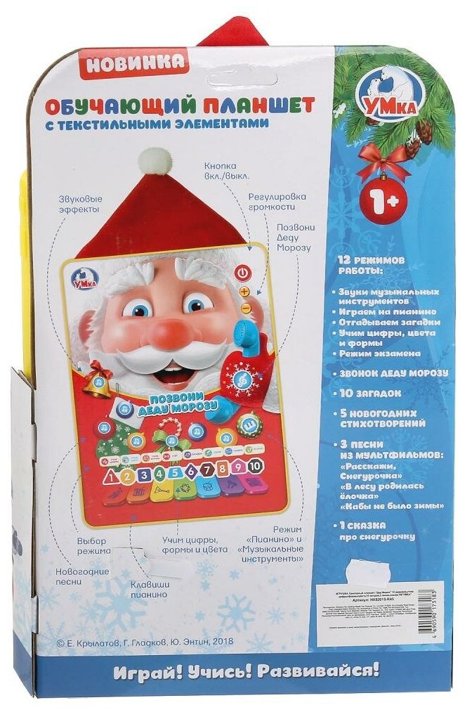 Ниже Вы можете прочитать отзывы на Планшет Умка "Дед Мороз" 12 режимов, учим цифры и формы, сенсорный (HX82015-R45), ознакомится с подробными характеристиками, посмотреть интересные обзоры и фотографии на Планшет Умка "Дед Мороз" 12 режимов, учим цифры и формы, сенсорный (HX82015-R45).