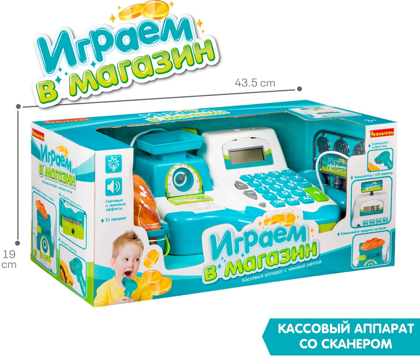 Купить Игр.набор BONDIBON, играем В магазин, с кассовым аппаратом, чековой лентой и аксесс., 2 предм., BOX