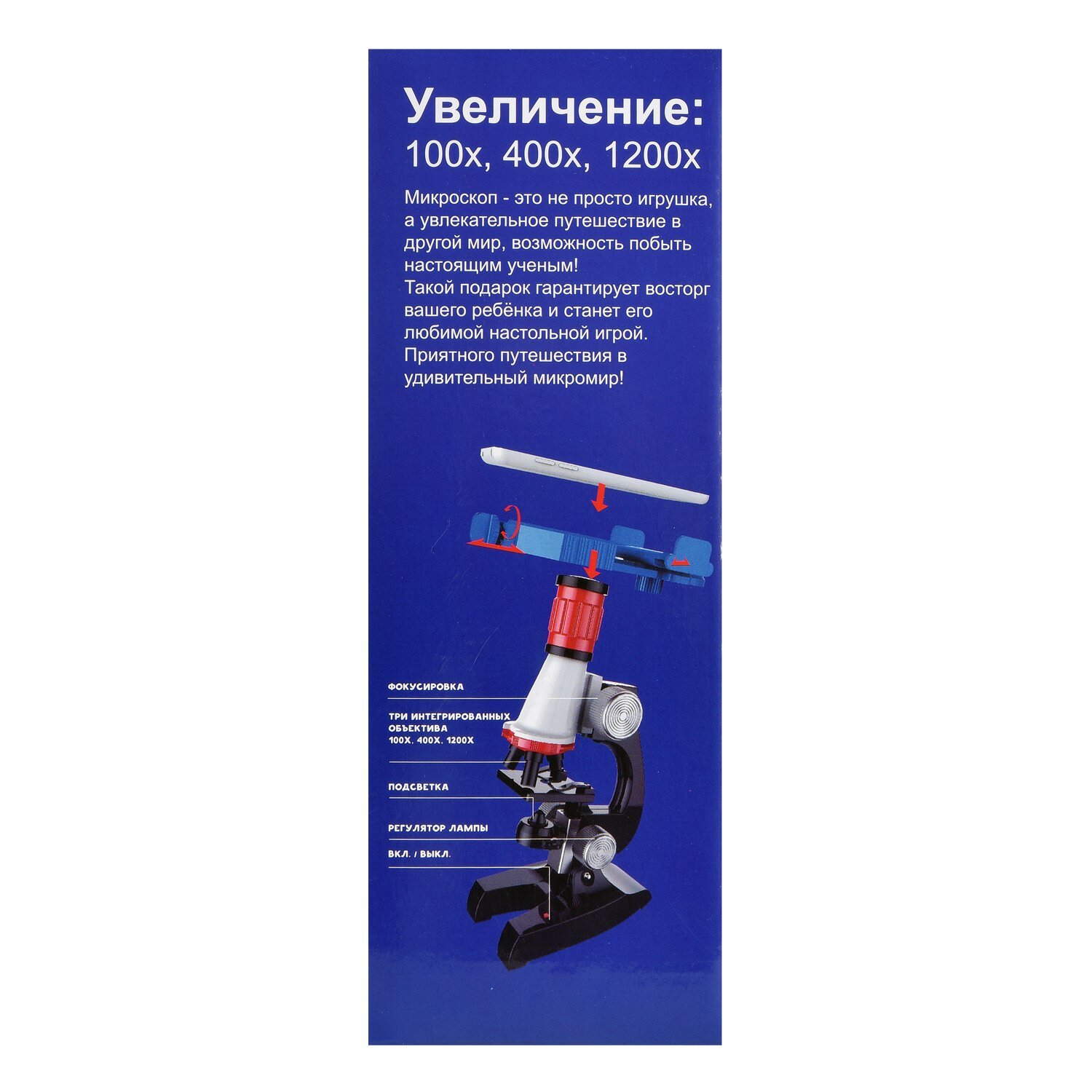 Микроскоп в наборе с аксессуарами, увеличение 100х, 400х, 1200х, в коробке, 21,5х9х24,5см