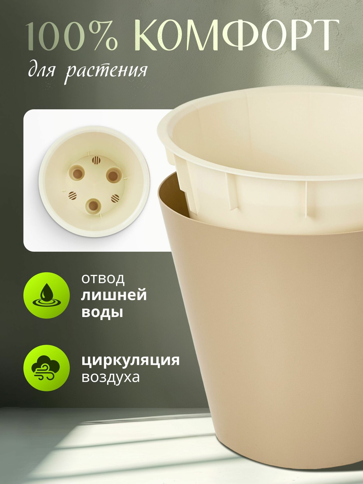 Горшок для цветов с дренажной вставкой InGreen коллекция London, пластиковый, с техническим горшком, 1л, 0,7л 125мм, 125х125х113 (IG1552) Молочный шоколад