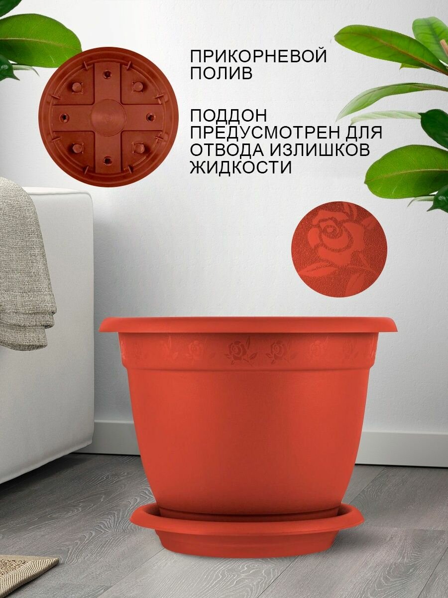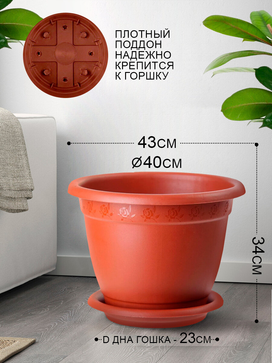 Горшок с поддоном Борнео, 25,8 л, цвет терракотовый