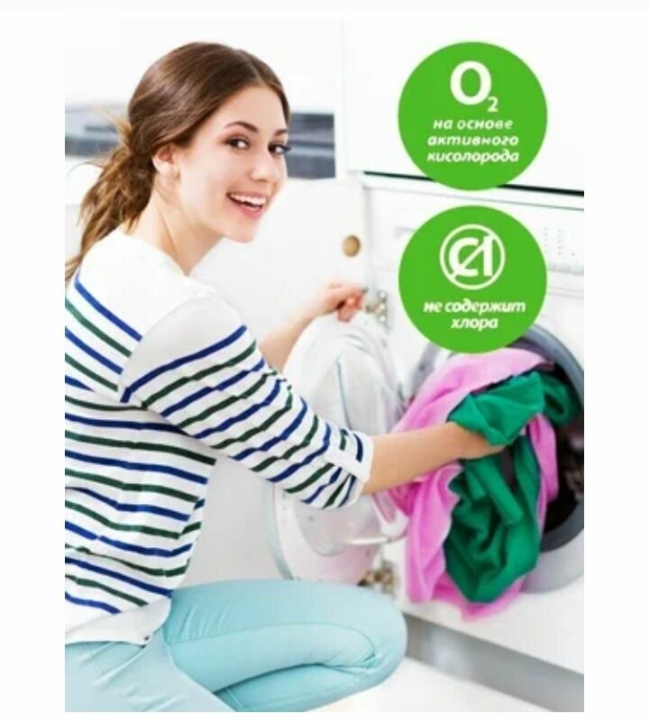 | Плюсы: | Устраняет все пятна, и с цветного белья. |