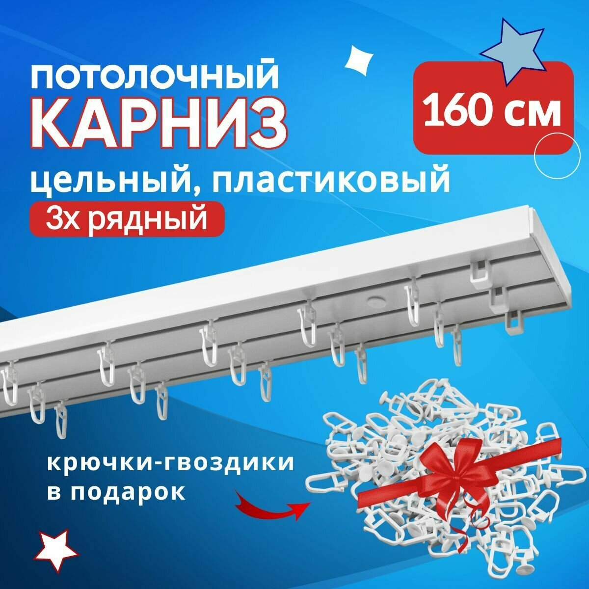 Карниз потолочный пластмассовый трехрядный 160 см белый