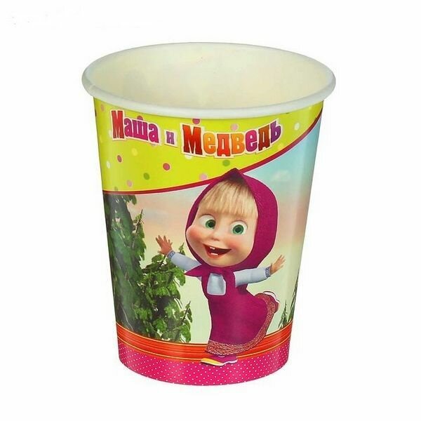 Стаканы бумажные "Маша и Медведь", 250 мл, набор 6 шт.