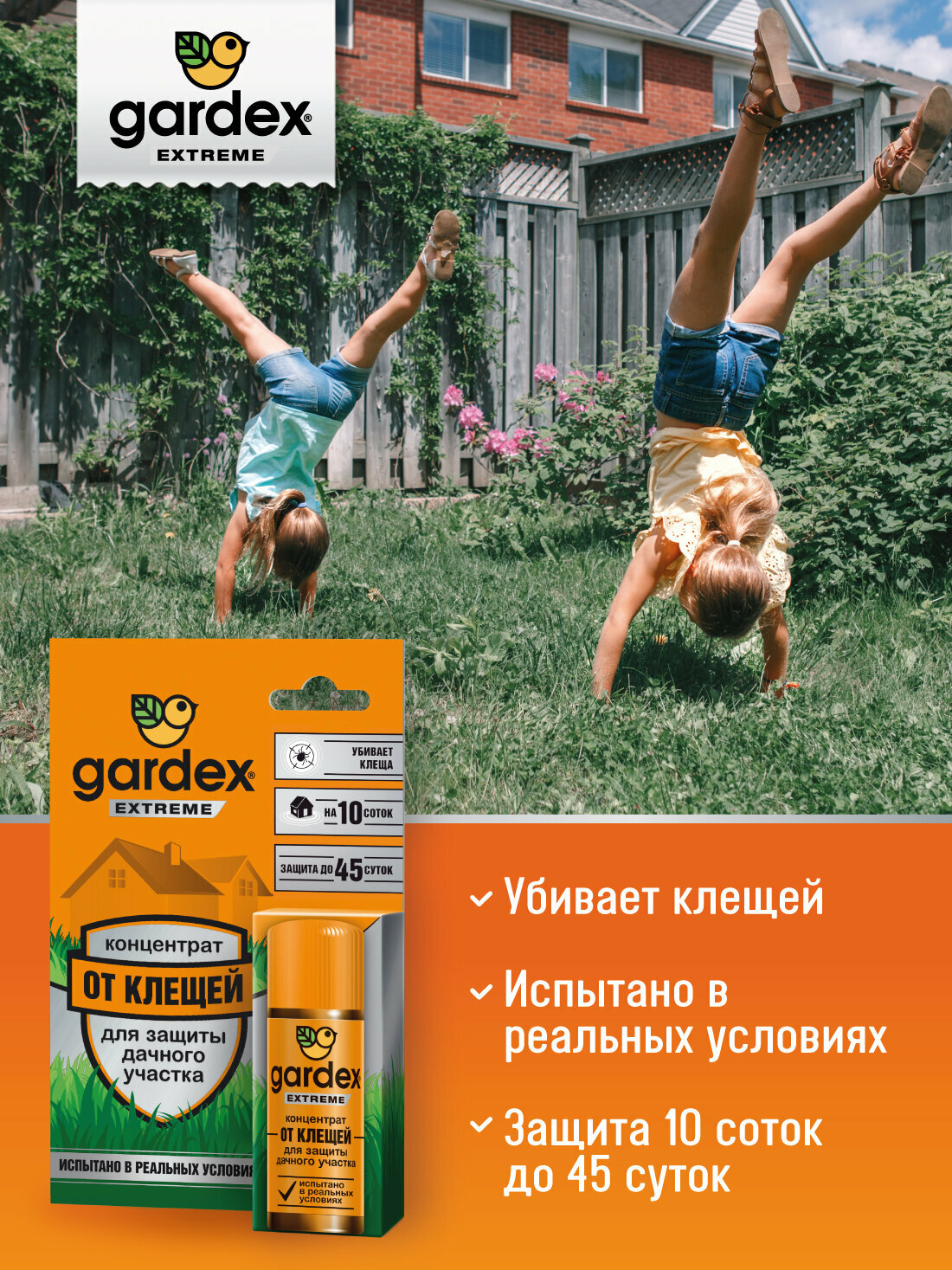 каждый сезон, перед тем, как ехать на лето на дачу, сначала мы обрабатываем весь участок концентратом Gardex от клещей. У нас двое детей и несколько пушистых хвостов, которым клещи ну вот вообще никак не нужны. С Gardex защита работает отлично, за все время, с момента, как начали проводить обработку, ни одного этого кровососущего на участке замечено не было.