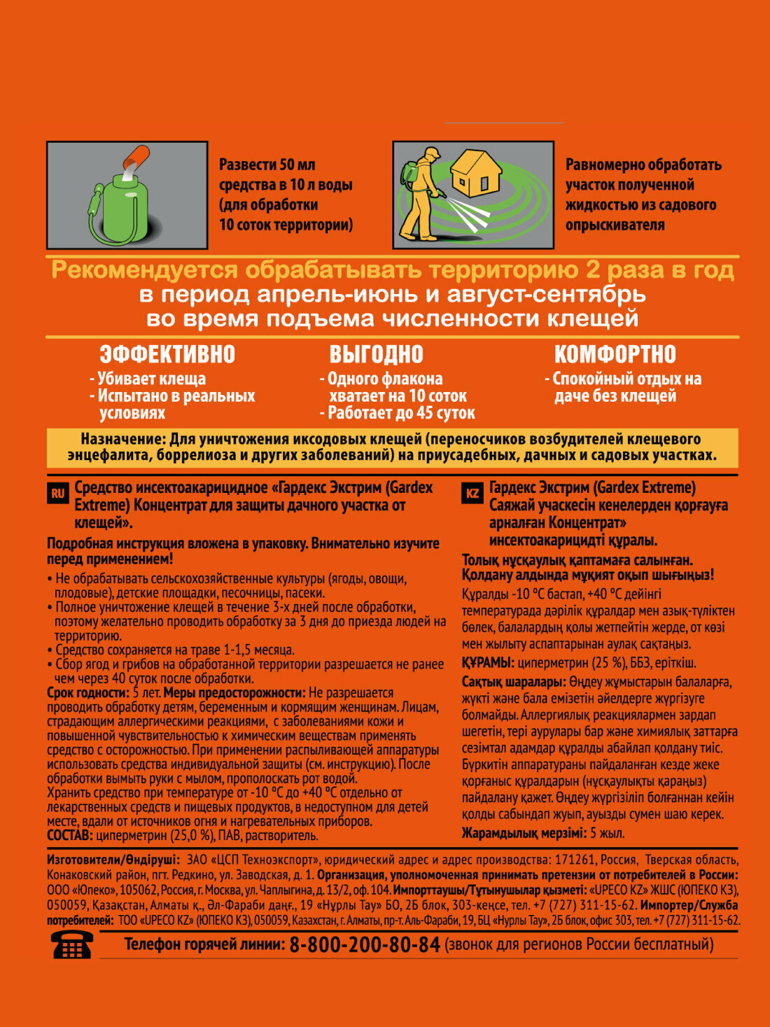 удобство использования, полное отсутствие клещей после обработки участка.