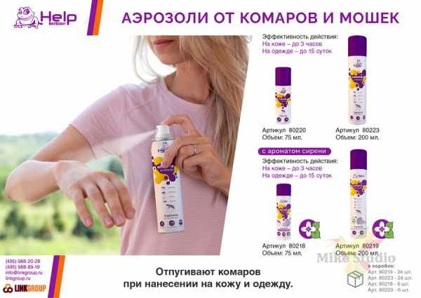 Репеллентный аэрозоль от комаров и мошек HELP Сирень, 75 мл 6 80218