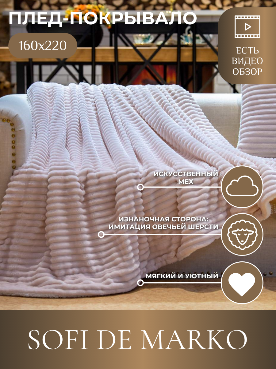 СохранитьПлед Sofi de Marko Полоса, 160х220, пудра интересное:
