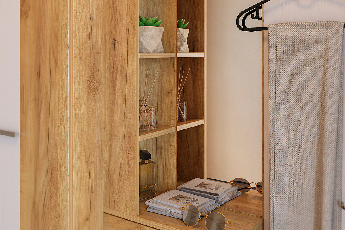 | Плюсы: | Габариты и функциональность для небольшой прихожей. |