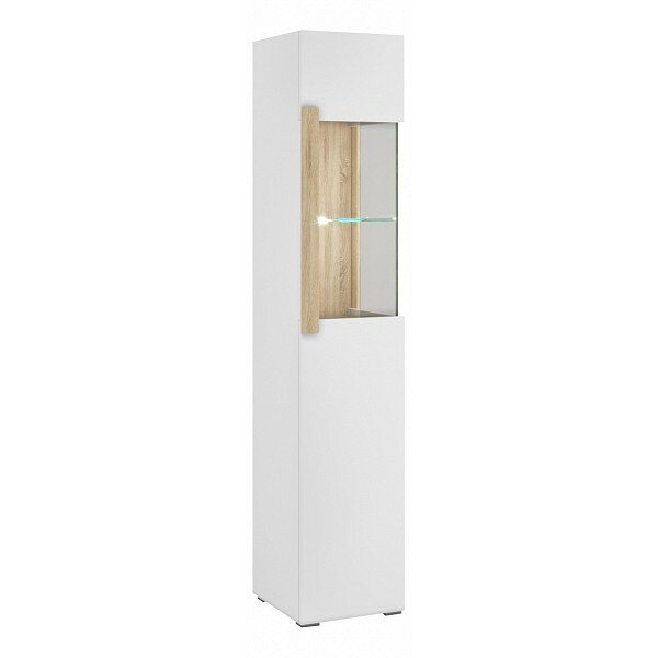 Шкаф витрина однодверная Куба 1717, Принцесса Мелания, Белый / Дуб сонома, 1995х448х395 мм