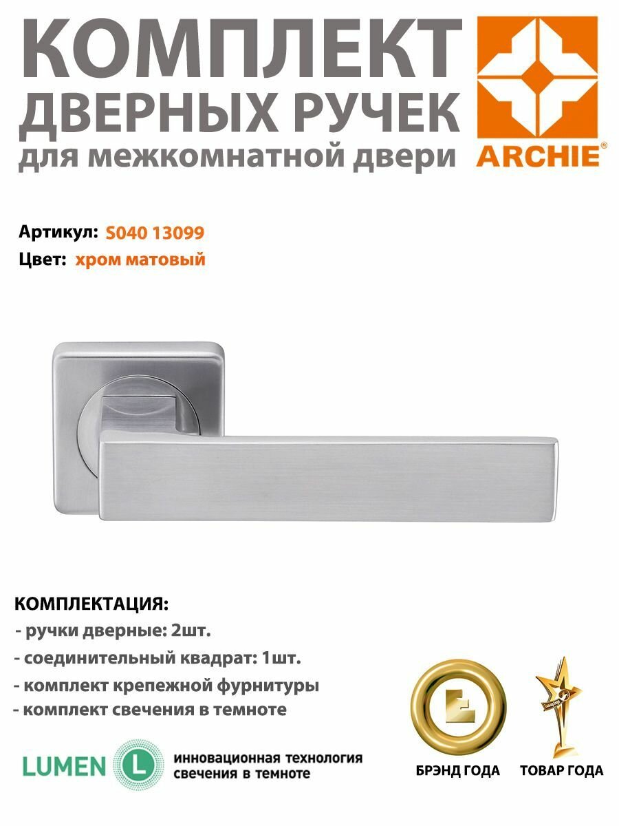 Дверная ручка на квадратной розетке ARCHIE Esta Line S040 13099 матовый хром