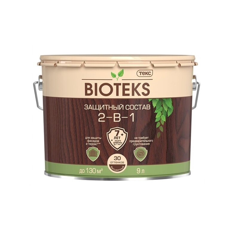 Текс BIOTEKS / Биотекс защитный состав 2-в-1 для наружных работ, орех (9 л)