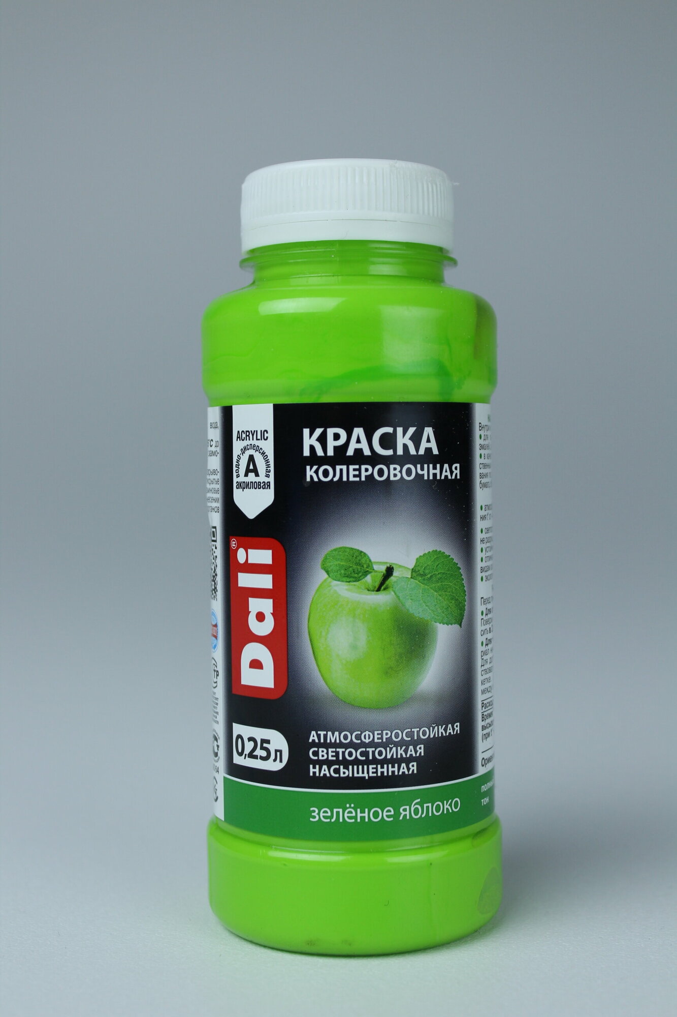Краска акриловая, колеровочная Dali (0,25л) зеленое яблоко