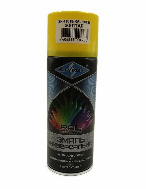 SKYRON SR-11018 Эмаль универсальная акриловая желтая (RAL 1018) аэрозоль 520 мл SKYRON SR-11018