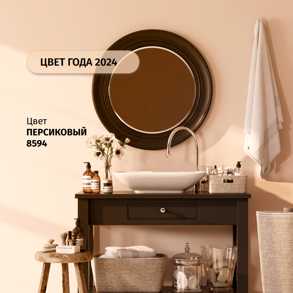 Купить Краска антибактериальная шелковисто-матовая, моющаяся для стен, потолков, кухонь и ванных AQUASATIN 7, 2.25л, цвет Года 2024 Персиковый тон 8594
