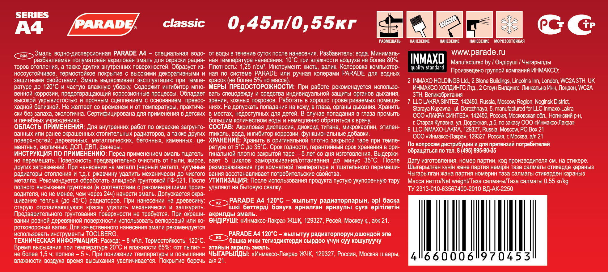 Эмаль акриловая (АК) Parade Classic A4 120°C