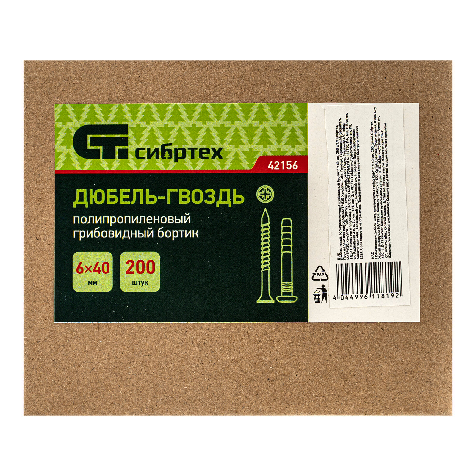 Дюбель-гвоздь СИБРТЕХ 42156, 6х40мм, 200шт