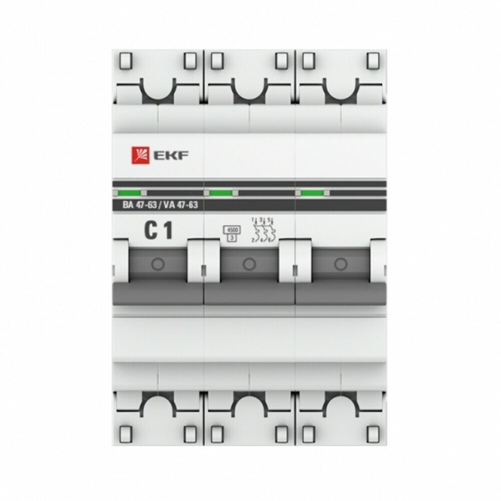 Выключатель автоматический модульный 3п C 1А 4.5кА ВА 47-63 PROxima, EKF MCB4763-3-01C-PRO (1 шт.)