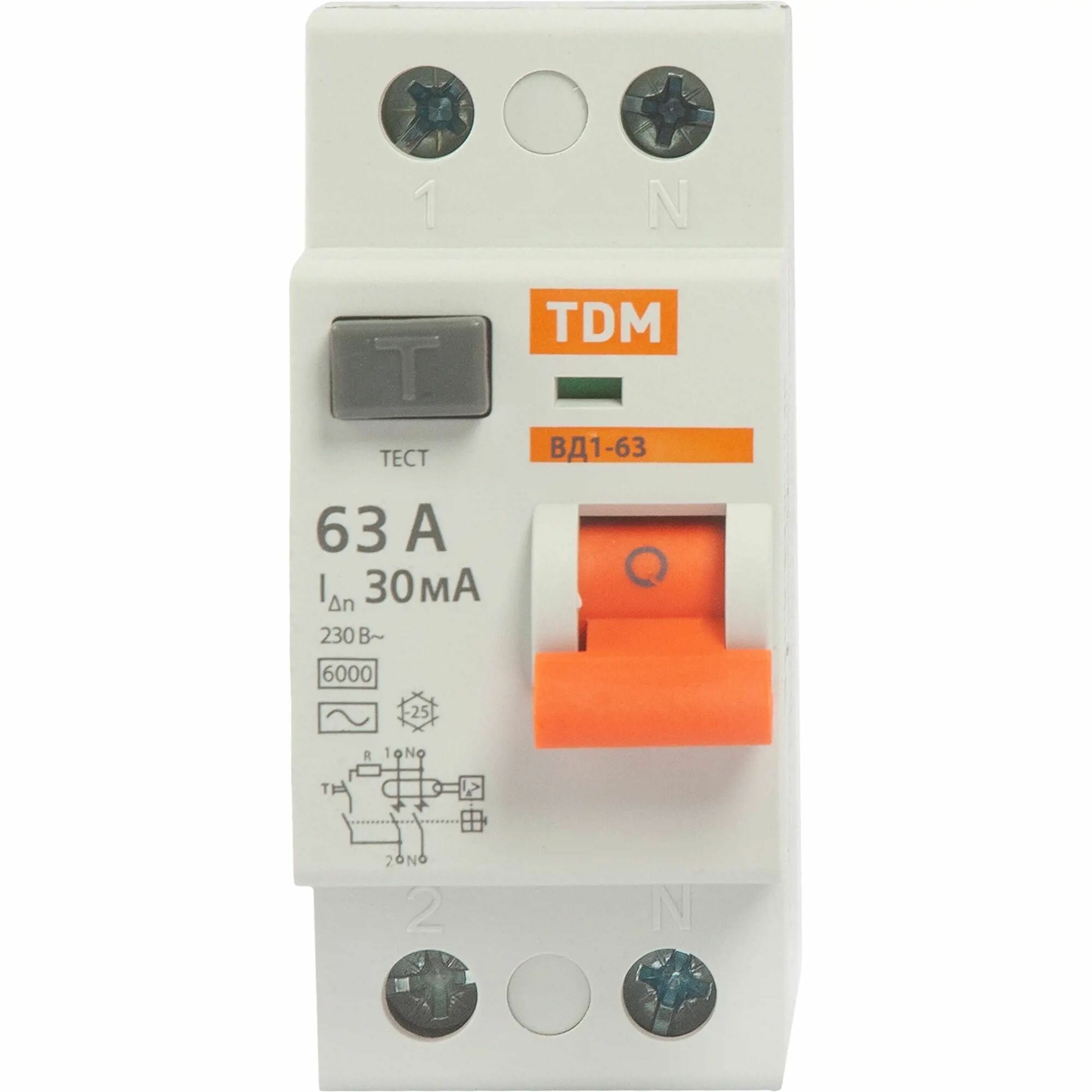 ТДМ Электрик ВД1-63 УЗО 2Р 63А хар-ка АС 30мА / TDM Electric ВД1-63 устройство защитного отключения 2 полюса 63А хар-ка АС 30мА