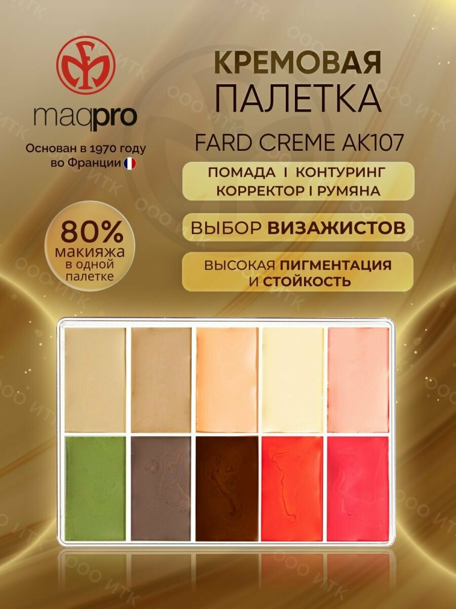 Тени кремовые AK101 10 цветов (Fard Creme), MaqPro