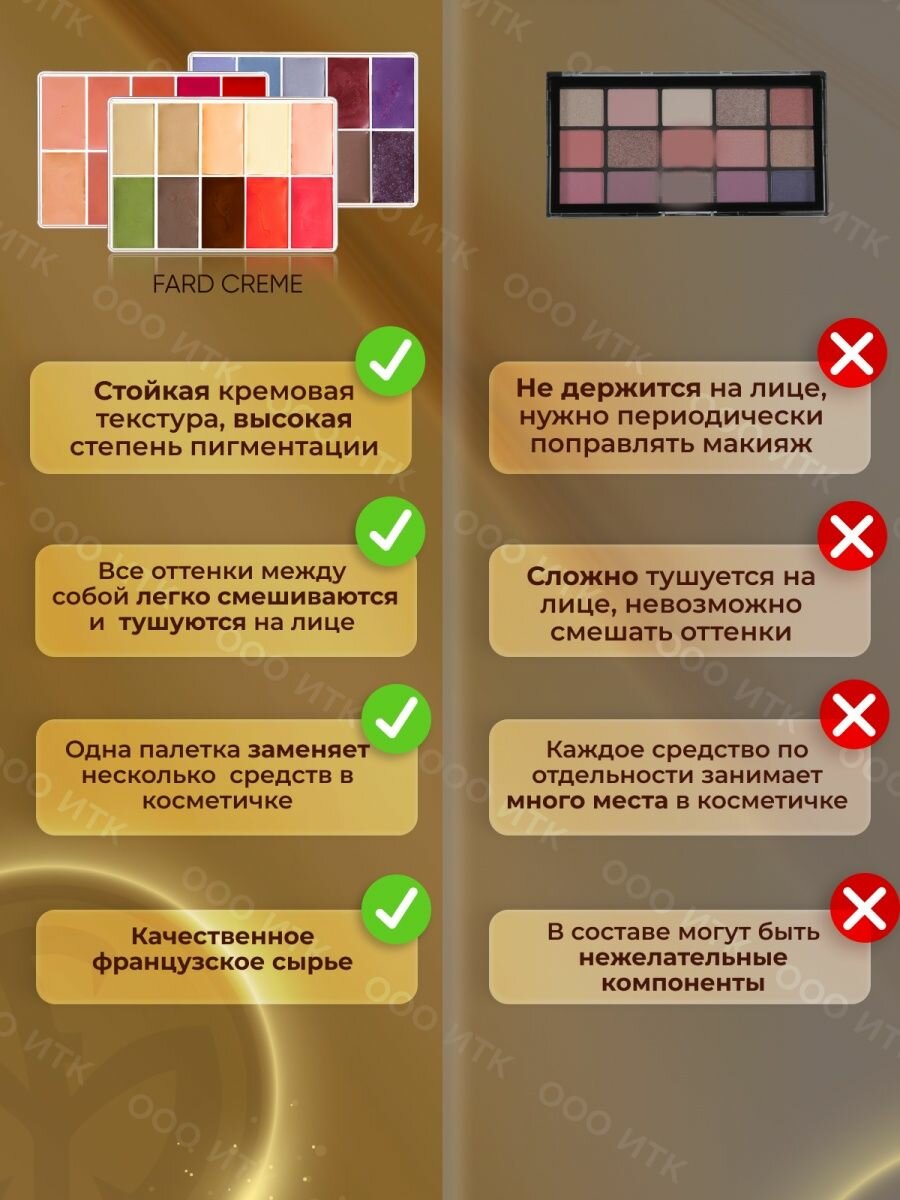Палетка Fard Creme FOUNDATION корректор румяна помады тени