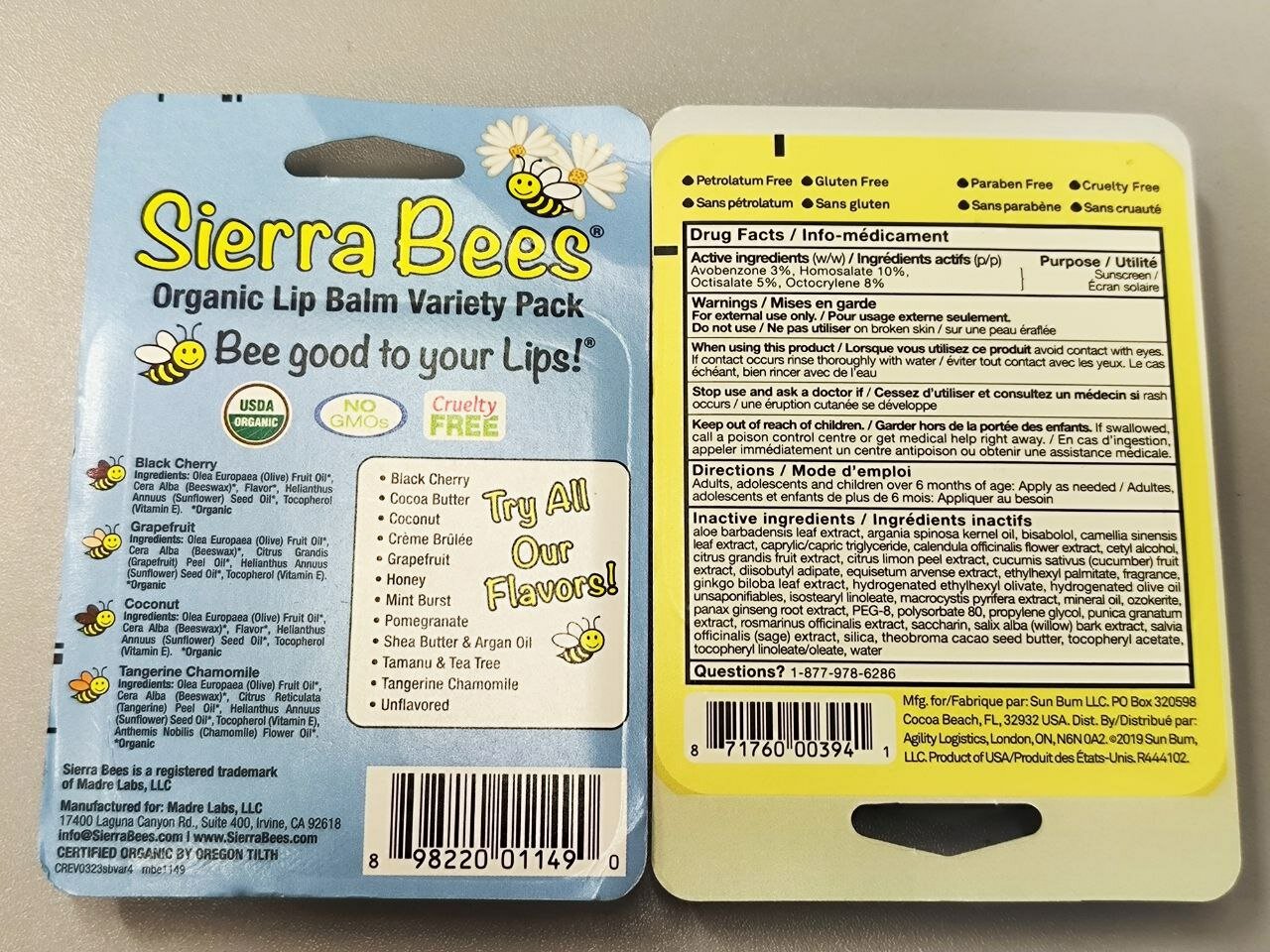 Sierra Bees, набор органических бальзамов для губ, 4 штуки, вес: 4,25 г каждый