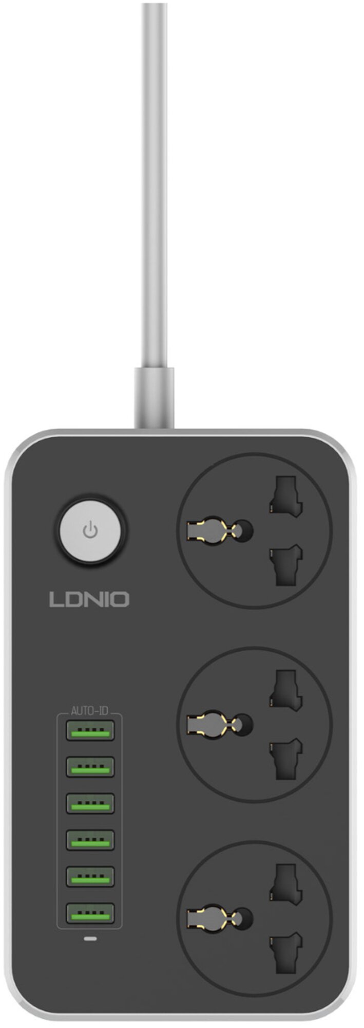 Сетевой фильтр LDNIO SC3604, 3 розетки (EU/UK/US/AU) + 6 USB портов Auto-ID, 2 м, Черный+Серый