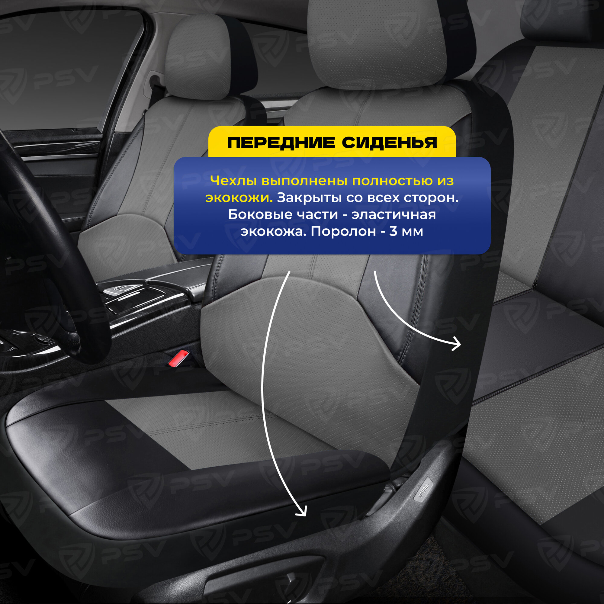 PSV 124613 Чехлы автомобильные универсальные эко-кожа черный "PSV" Imperial Next (серая строчка)