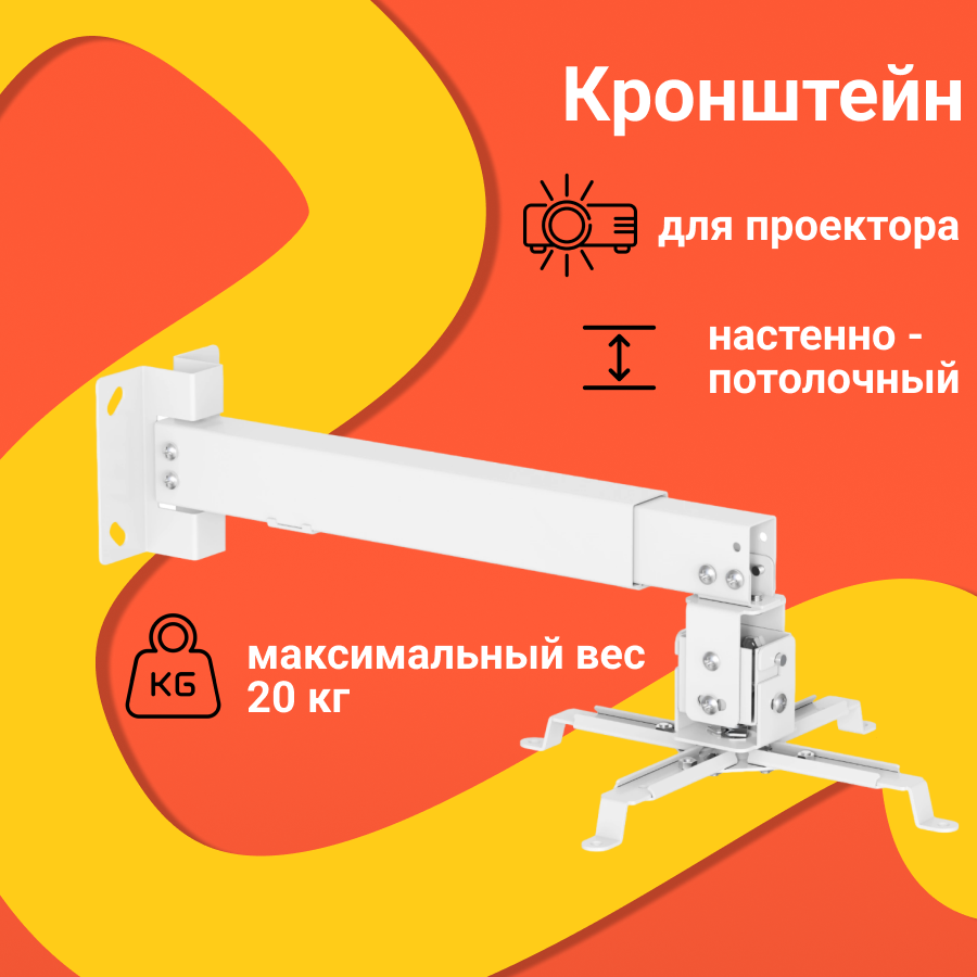 Кронштейн для проектора Cactus CS-VM-PRE01-WT, 20 кг, настенный и потолочный, поворот/наклон