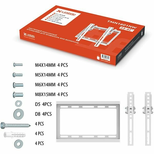Купить Кронштейн UniTeki TMN1601NW для телевизора наклонный на стену для диагонали 23-43 дюймов (58-109 см), макс. нагрузка до 35 кг, белый