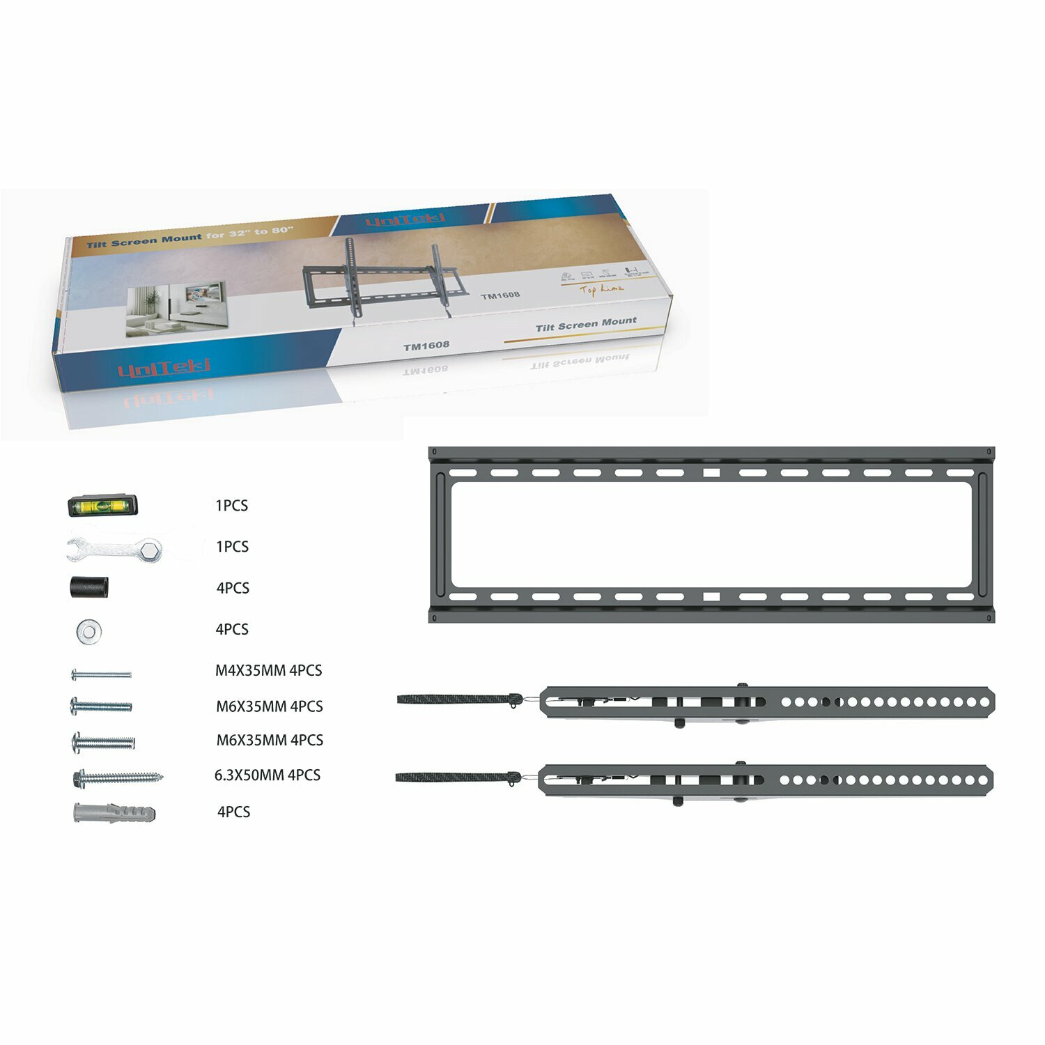 Купить Кронштейн UniTeki TM1608 для телевизора наклонный на стену для диагонали 32-80", макс. нагрузка до 45 кг, черный