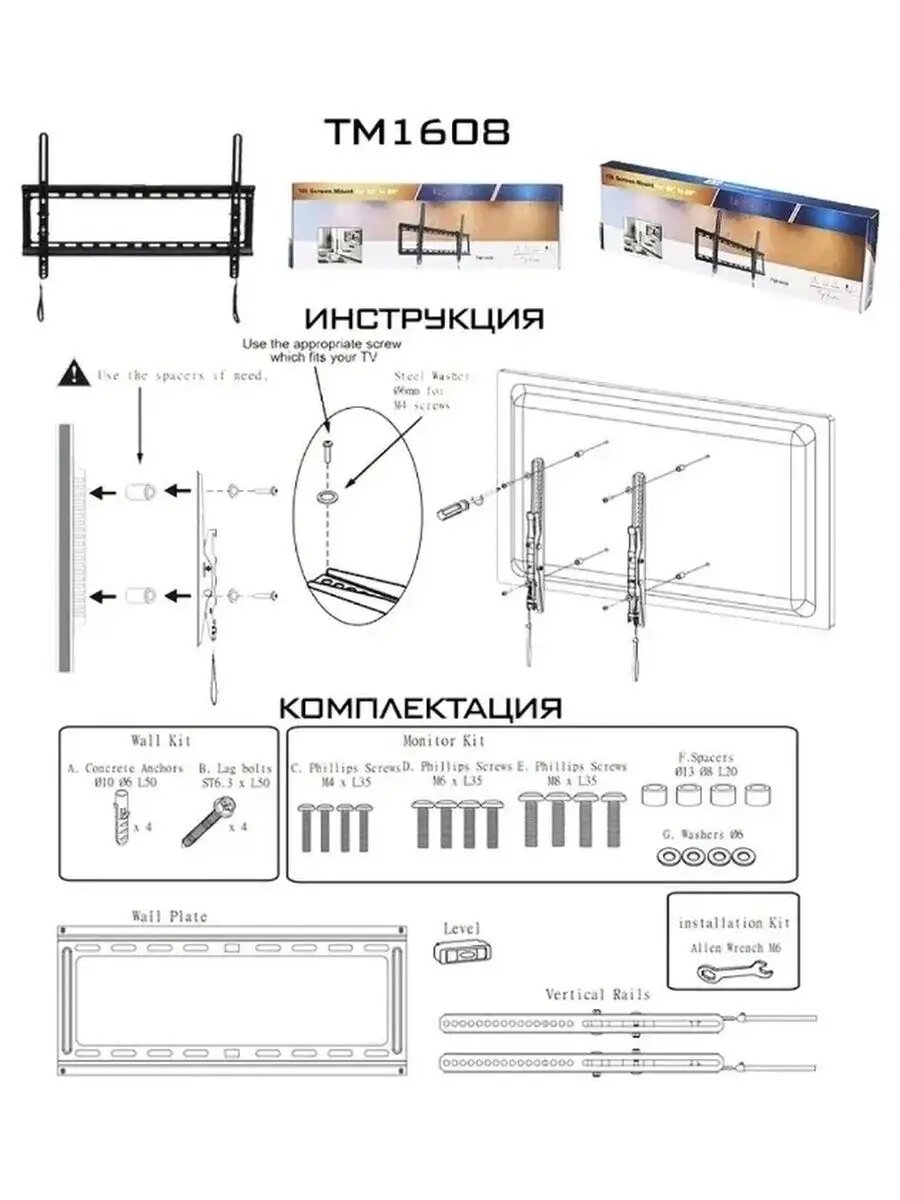 | Плюсы: | Крепкий, металл плотный, можно повесить даже большой телевизор |